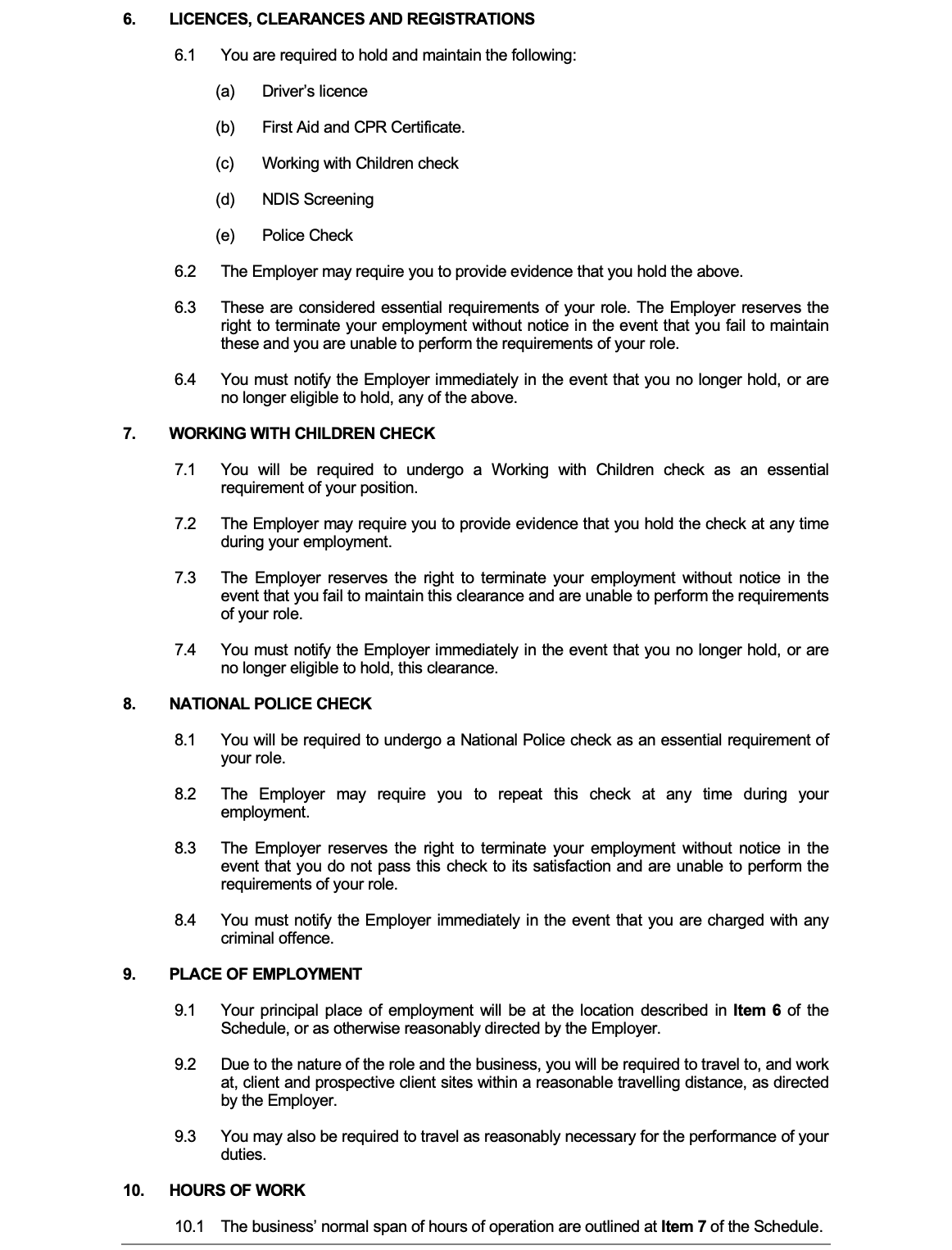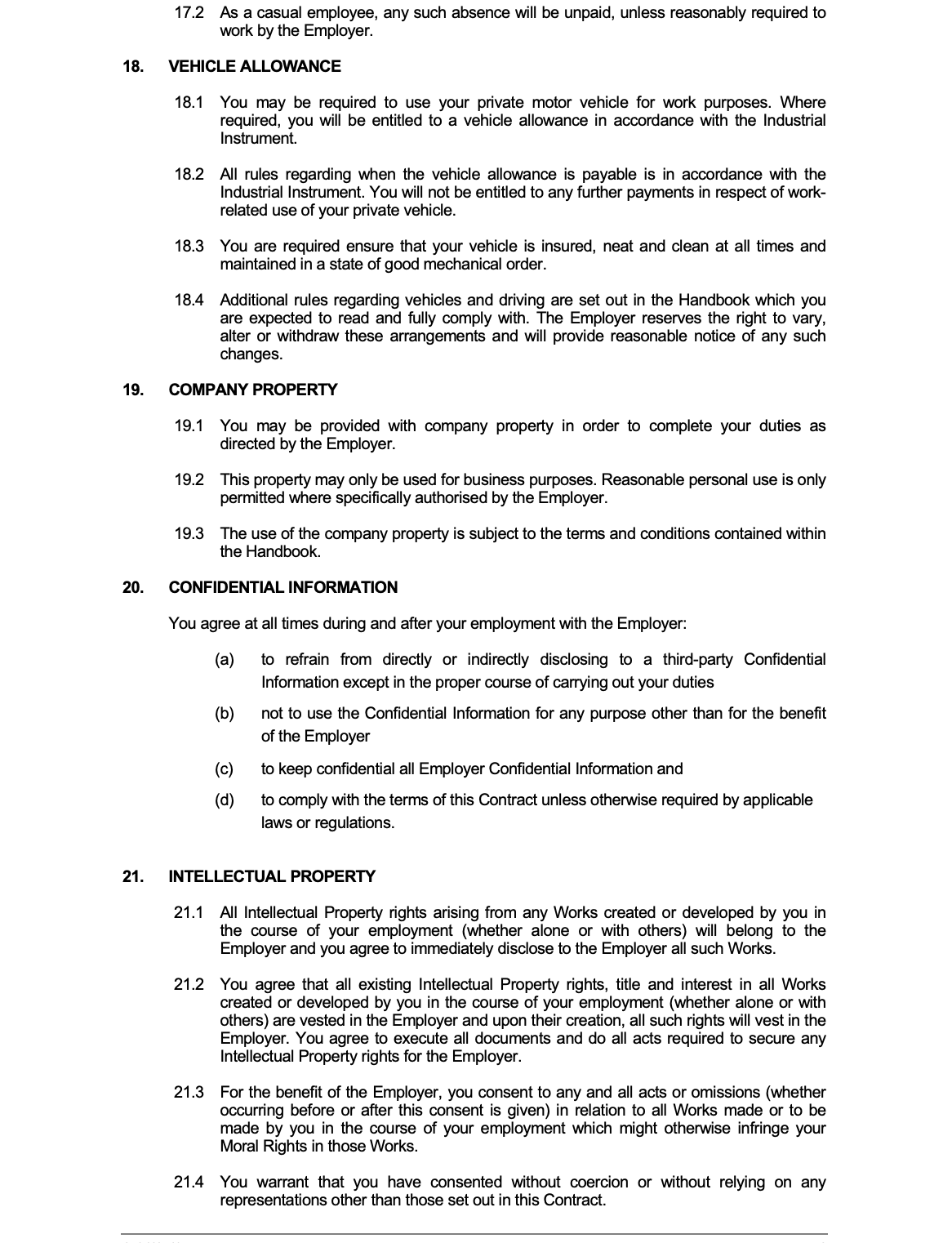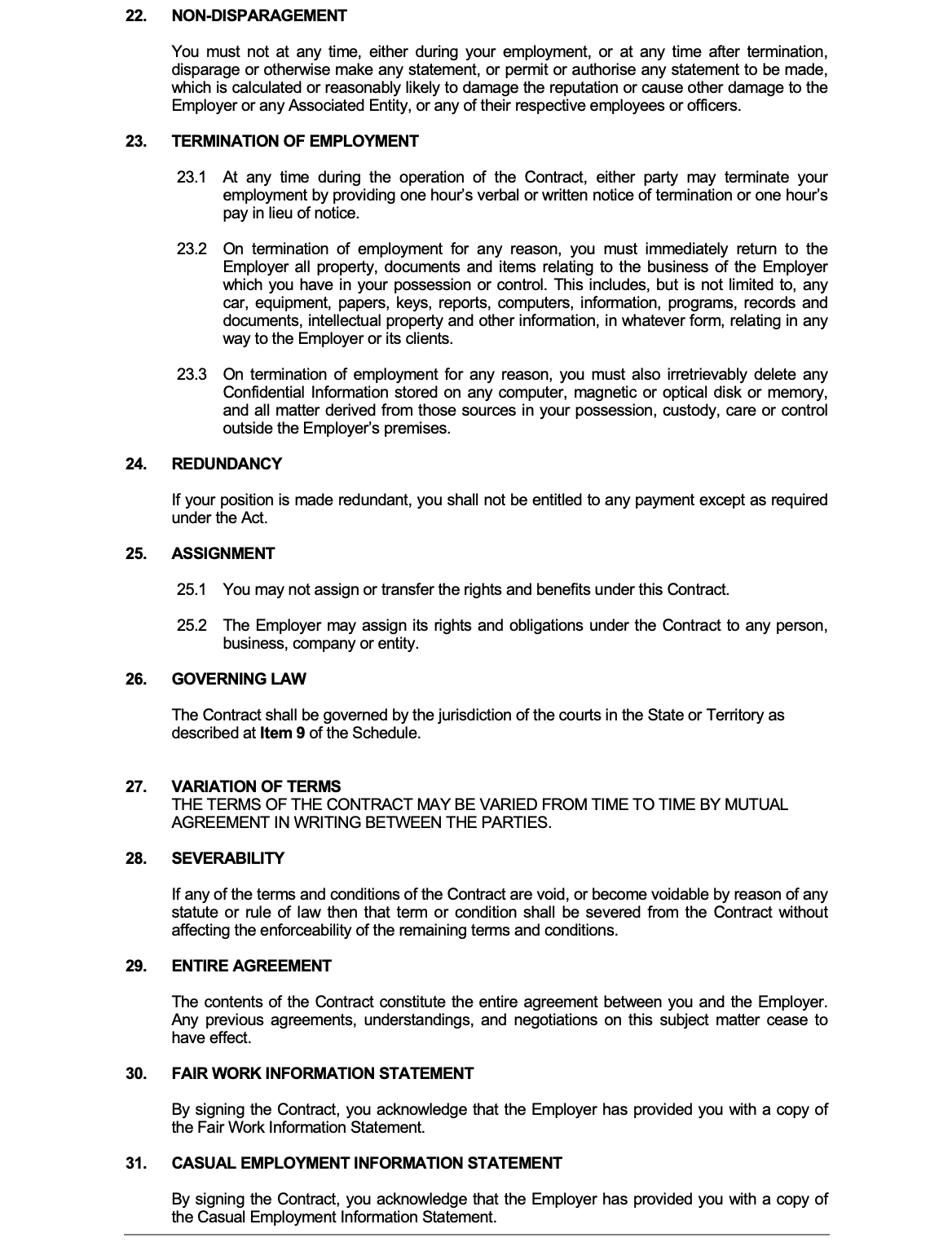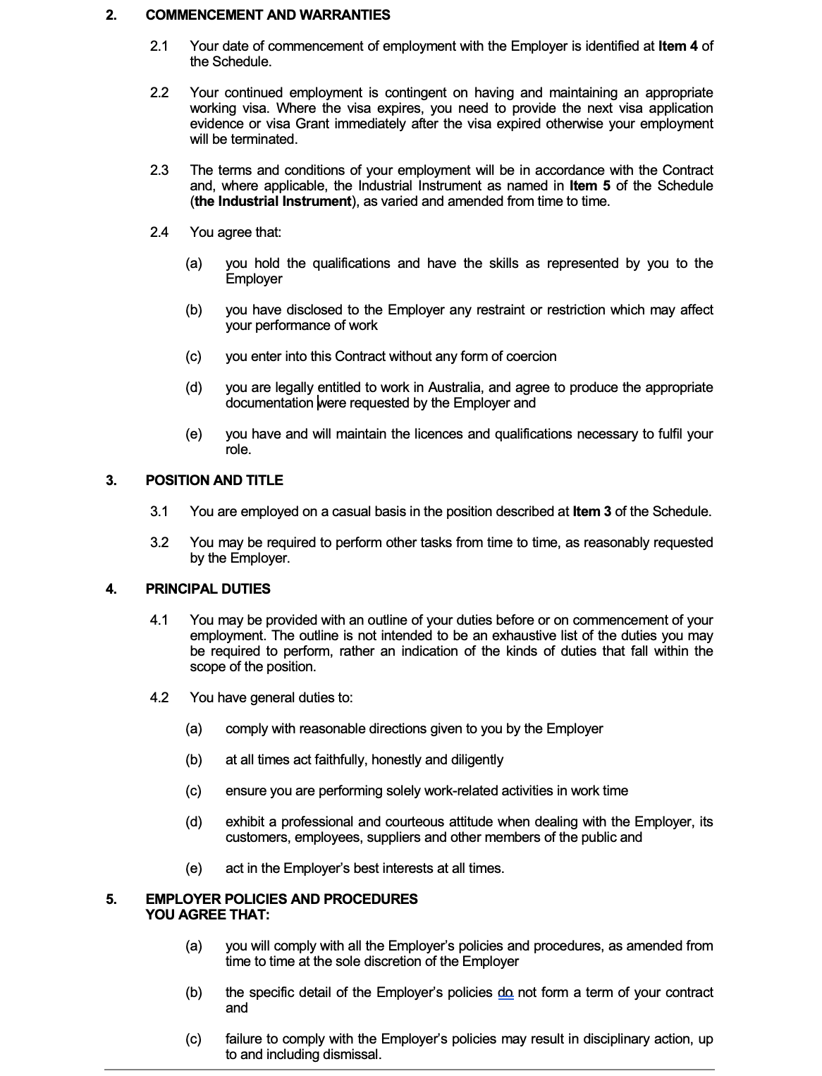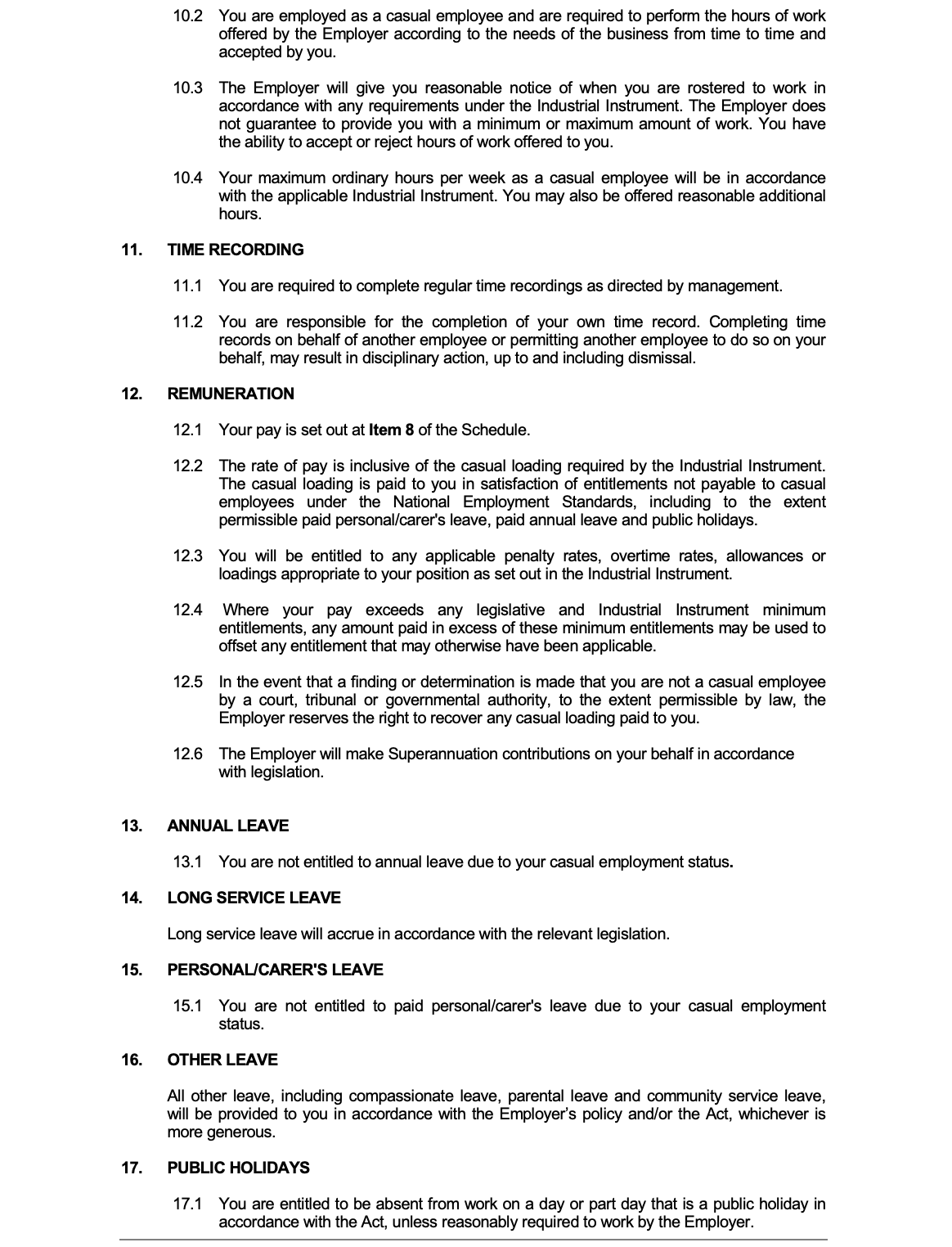 Casual (Award) Employment Contract